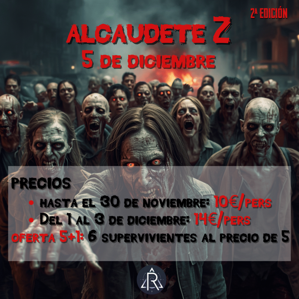 Alcaudete Z es una experiencia de supervivencia zombie que se llevará a cabo en la noche del 5 de diciembre de 2025 en Alcaudete (Jaén). Los participantes tendrán la oportunidad de vivir una aventura única luchando por sobrevivir en un apocalipsis zombie.